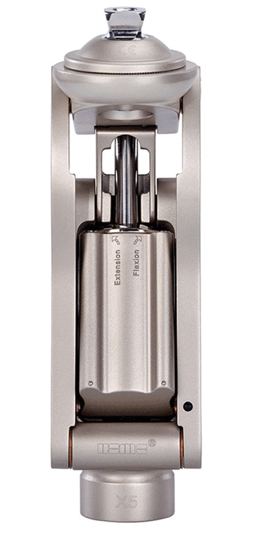 USMC X5膝關(guān)節(jié)在早期擺動(dòng)過程中,活塞會(huì)落入氣缸中,在后期擺動(dòng)過程中會(huì)升入活塞中。因?yàn)榭諝庖彩且环N流體,所以阻尼的大小與運(yùn)動(dòng)的速度成正比,從而減少了殘肢運(yùn)動(dòng)與假肢運(yùn)動(dòng)的不對稱性。