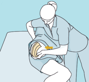 為了使截肢者能在非常短的時間內(nèi)穿戴假肢進行站立和行走,保持或者大限度恢復關(guān)節(jié)在各個方向上的活動性是十分重要的。因此,截肢者可以在家采取下圖中的姿勢,讓家人或醫(yī)護人員幫忙進行殘肢的拉伸。