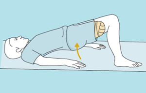 另外一個訓練是“橋式運動”。首先,保持平躺姿勢。將健側(cè)膝關(guān)節(jié)彎曲,用腳支撐,把雙臂向后伸展。然后,抬起臀部,使得肩膀、臀部、膝關(guān)節(jié)在一條水平線上。