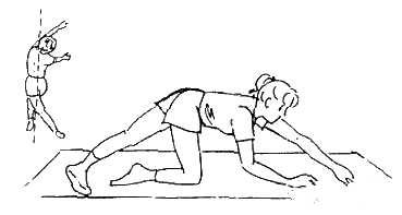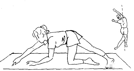 俯跪,左腳向后伸展,過中線,左手向前伸展,過中線,向右邊爬行成一弧度,維持10s,回復(fù)正中,右腳向后伸展,過中線,右手向前伸展,過中線,向左邊爬行成一弧度,維持10s。