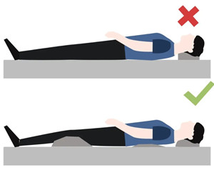 · 在不影響休息的情況下,在膝關節(jié)下面墊一個小枕頭,以及在腰椎下部可用毛巾卷起墊在下面更佳,保持身體原有姿勢穩(wěn)定。