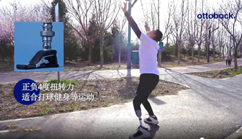 額狀面上來看,該腳板的內(nèi)外翻角度可以高達(dá)+/-10度,支持用戶身體重心的偏移,無論是坡道還是踩踏障礙物都可以快速實(shí)現(xiàn)全腳掌迅速著地,降低地面反作用力對殘肢的剪切力,提高假肢穿戴舒適度;同時(shí)在打羽毛球、乒乓球等運(yùn)動(dòng)時(shí)可以靈活移動(dòng)身體,享受運(yùn)動(dòng)的快樂。