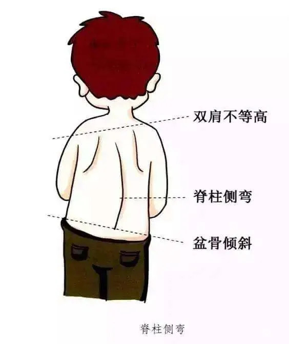 無論是站立還是彎腰,從背后看脊柱兩側(cè)腰背輪廓不對稱,一邊高一邊低;站立或坐立喜歡側(cè)向一邊;對10歲以上的孩子應(yīng)3個月觀察一次。