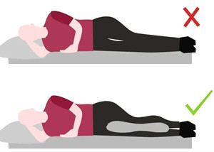 · 在不影響休息的情況下,在膝關節(jié)下面墊一個小枕頭,以及在腰椎下部可用毛巾卷起墊在下面更佳,保持身體原有姿勢穩(wěn)定。