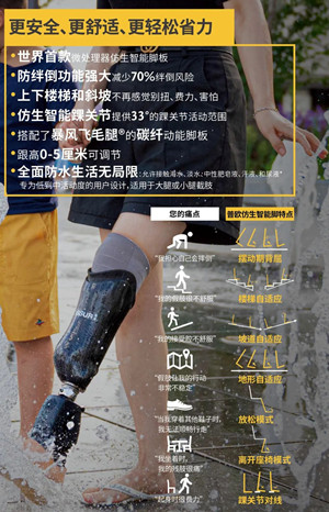 普歐仿生智能腳還提供33°踝關(guān)節(jié)活動度,可以搭配最高5cm跟高的鞋子等優(yōu)勢。