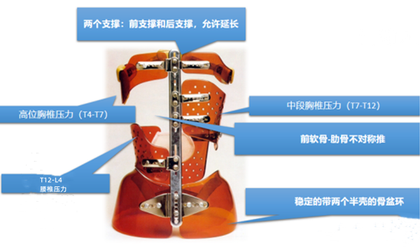 1、運(yùn)用了耦合運(yùn)動(dòng)來實(shí)現(xiàn)三維矯正,結(jié)合幾何和機(jī)械反扭轉(zhuǎn)來矯正錐體的旋轉(zhuǎn),這種矯正機(jī)制與三點(diǎn)力矯正原理和抗旋轉(zhuǎn)原理不同。在胸椎中根據(jù)關(guān)節(jié)面的前方定位,在彎曲中進(jìn)行區(qū)域前方矯正,在腰椎中根據(jù)關(guān)節(jié)面的矢狀定位,在移位中進(jìn)行區(qū)域前方矯正。